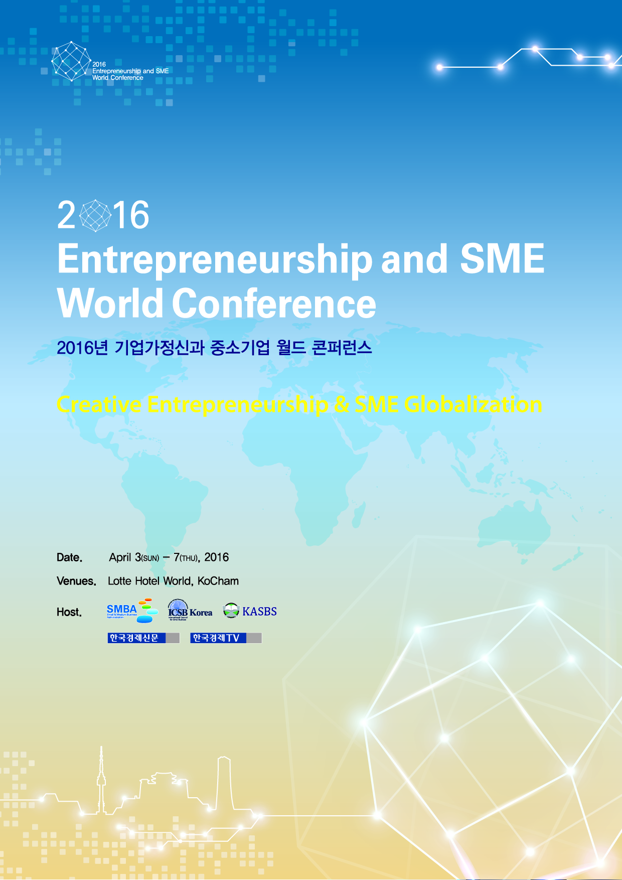 2016 Entrepreneurship and SME World Conference 기업가정신과 중소기업 월드 콘퍼런스 Creative Entrepreneurship and SME Globalization 창조적 기업가정신과 중소기업의 글로벌화 |